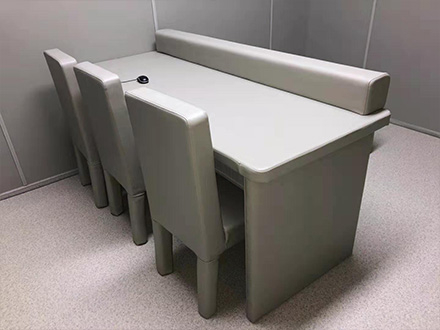 審訊談話桌椅防撞軟包桌椅以前傳統(tǒng)的海綿軟包和軟包資料現(xiàn)已不能滿意現(xiàn)代紀(jì)檢委審問室的裝修規(guī)范了,紀(jì)檢委審問室是…